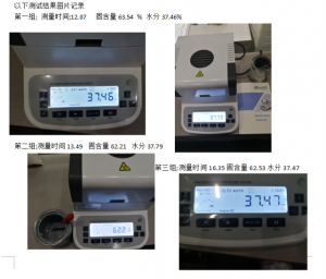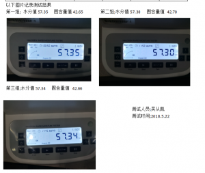 第一組數(shù)據(jù)為?水分值41.32% ??固含量值58.68%