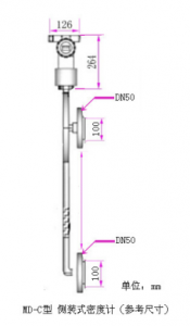 1: 直接式?在線液體密度計傳感器部分間距最少為200mm,直徑為50mm, 現(xiàn)場不能小于這些尺寸安裝,如選擇彎曲型密度計,請測量好可以伸進(jìn)管內(nèi)的法蘭和長度尺寸.